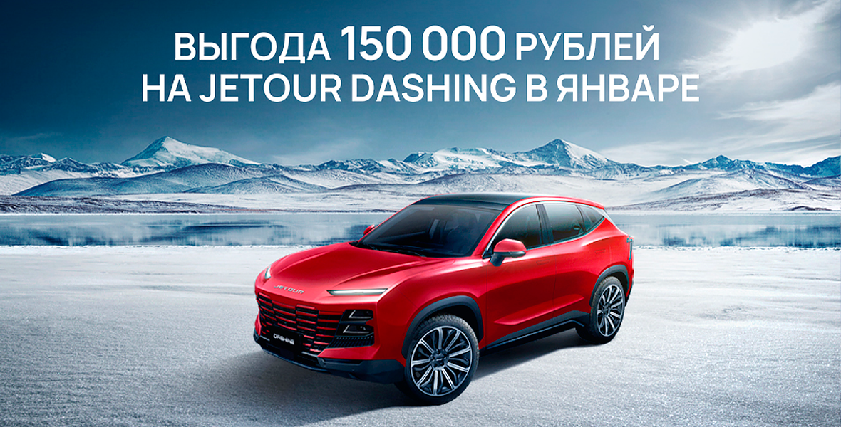 Кроме этого, в январе можно приобрести автомобиль Jetour Dashing в любой комплектации с выгодой 150 000 рублей у официальных дилеров Jetour. Предложение суммируется со всеми кредитными программами банков-партнеров. Акция действует до 31 января 2024 года. Подробности необходимо уточнять в отделе продаж выбранного дилерского центра.5