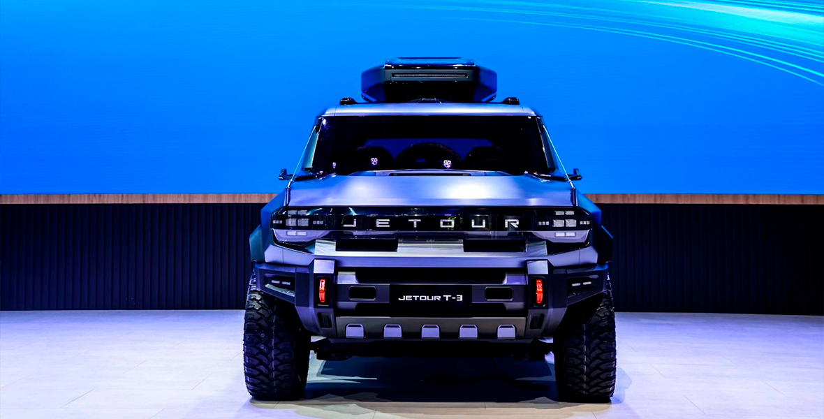 Большой интерес гостей автосалона вызвал концепт-кар Jetour T3. Рамный кузов внедорожника лучше адаптирован для сложных условий бездорожья, демонстрируя прочность и долговечность. Длина модели составляет 5.3 м, ширина – 2 м, высота – 1.9 м, а колесная база – 3 м.